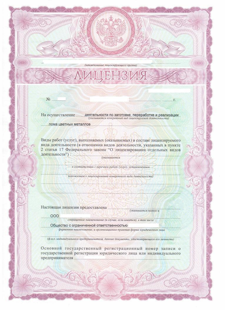 Оформление лицензий на лома черных и цветных металлов в каждом регионе Российской Федерации.